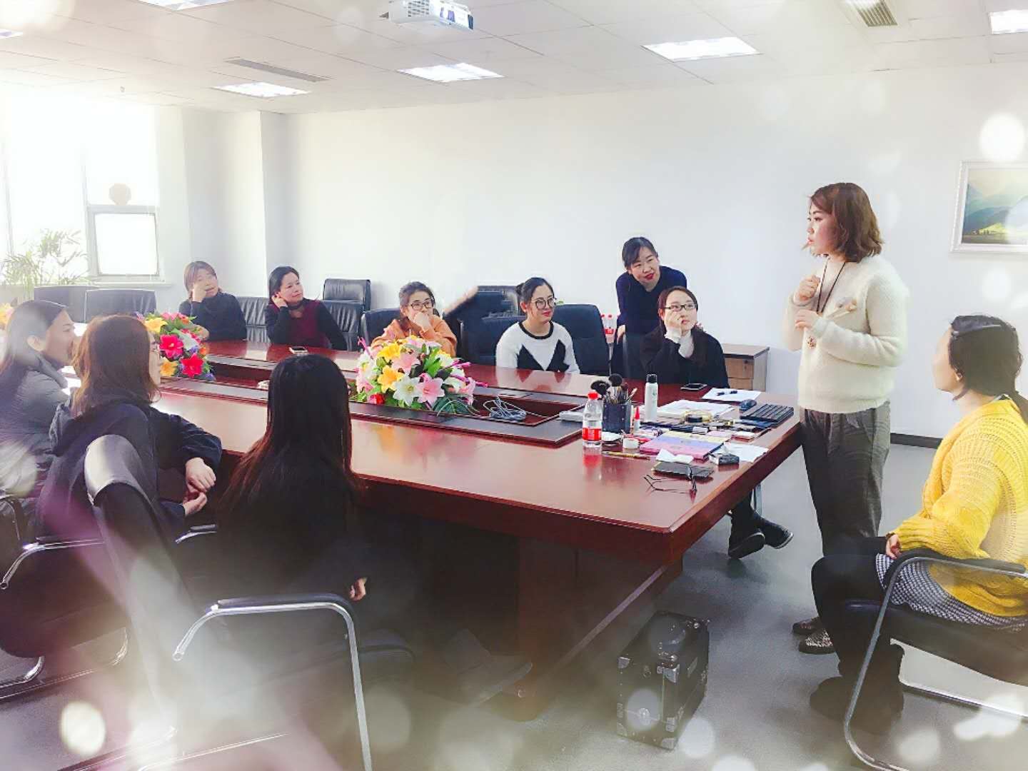 小夕老師首先給大家講授了化妝的理論知識,詳細(xì)講解了女性化妝的重要性以及不同場合的適合妝容。